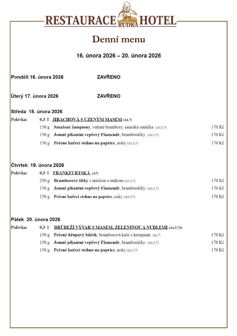 Denní menu podáváme od středy do pátku od 11h do 14h.